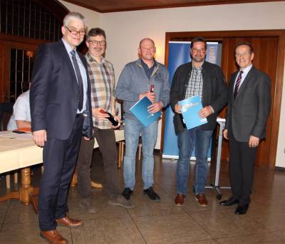 Ein schöner Punkt war wie jedes Jahr die Ehrung langjähriger Mitglieder. Dieses Jahr konnten Rainer Kirchhoff für 25 Jahre Mitgliedschaft sowie Holger Gralher, Erich Hufenbach, Michael Dierks und Klaus Schröter für 10 Jahre Mitgliedschaft ausgezeichnet werden.