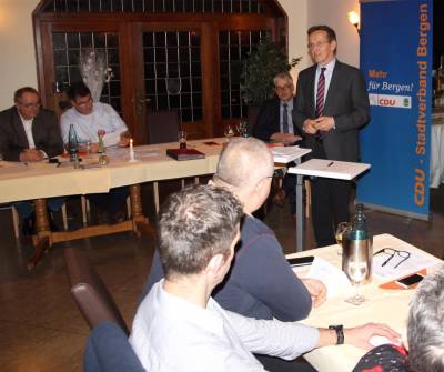 In seinem Jahresbericht 2018 ging der Vorsitzende Peter Meinecke auf die vielfältigen Aktivitäten des vergangenen Jahres ein. Eine besondere Herausforderung war dabei die kurzfristige Nominierung eines Bürgermeisterkandidaten. Dies wurde notwendig durch die Ankündigung von Bürgermeister Rainer Prokop, sich Ende Oktober 2019 in den vorzeitigen Ruhestand versetzten zu lassen. Peter Meinecke bedankte sich in diesem Zusammenhang bei seinem Vorstand für die umsichtige Vorbereitung der Kandidatennominierung im vergangenen Jahr. Mit Frank Juchert, der mit 96 % der Stimmen überzeugend nominiert wurde, hat die CDU in Bergen einen Kandidaten gefunden, der mit vielen guten Ideen die Stadtentwicklung angeht und dabei auch über Gestaltungswillen und Verwaltungserfahrung verfügt.